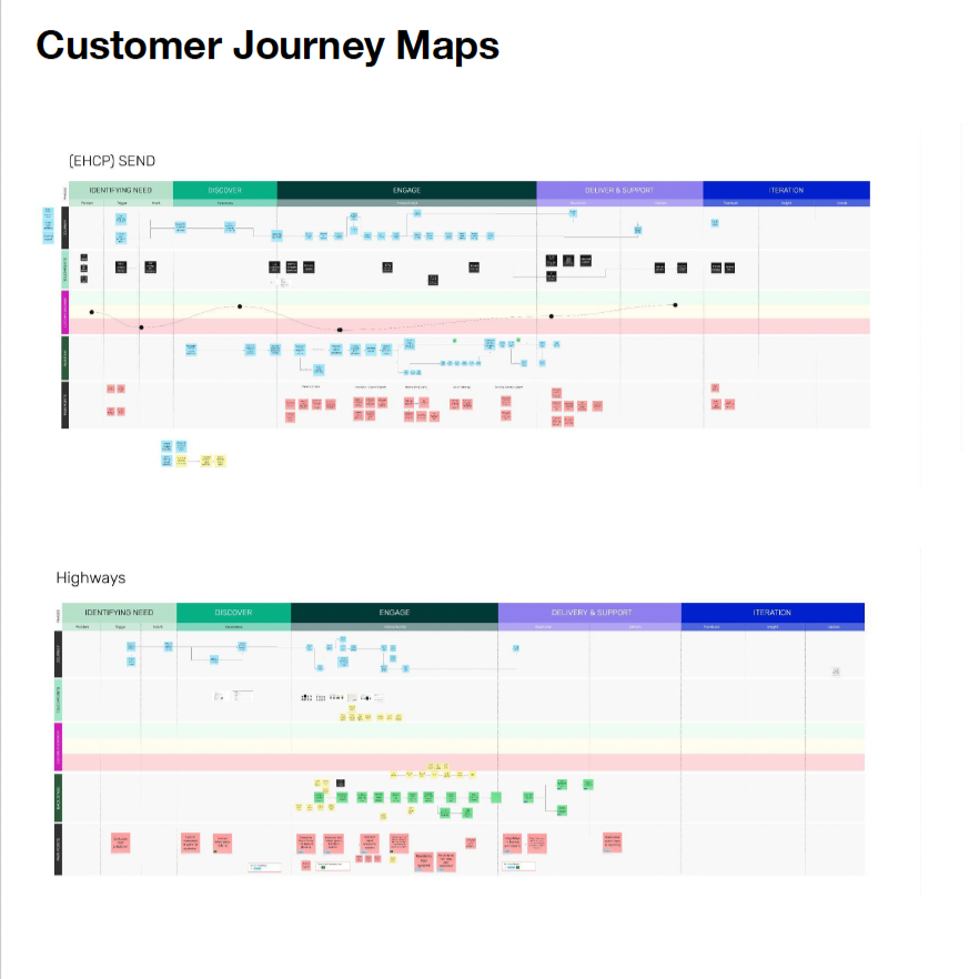 From this point we built a strong evidence base across all three service areas, consolidating existing research while filling critical gaps around lived experience. This included exploratory interviews with ECC stakeholders, in-depth interviews with 27 residents, journey mapping workshops with delivery teams, and early concept testing.